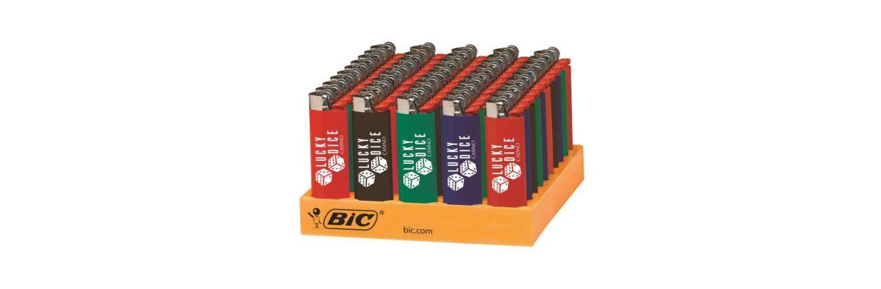 Minimum order quantity is 600 lighters (2 cases). Available in additional increments of 300 lighters (1 case). Body Color mix may vary by tray, equal mix of color not guaranteed.